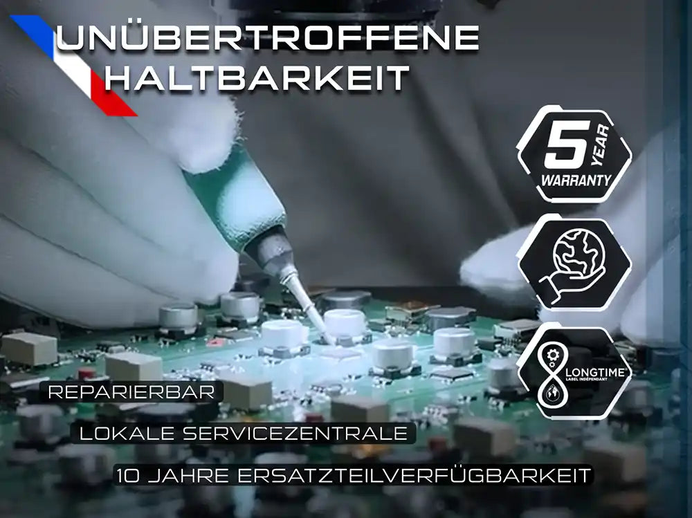 Der XP DEUS 2 steht für außergewöhnliche Haltbarkeit und ist auf eine besonders lange Lebensdauer ausgelegt. Er ist reparierbar, wird über lokale Servicezentren betreut und bietet eine 5-Jahres-Garantie sowie eine Ersatzteilverfügbarkeit von bis zu 10 Jahren - ideal für alle, die auf nachhaltige Qualität und langfristige Nutzung setzen.
