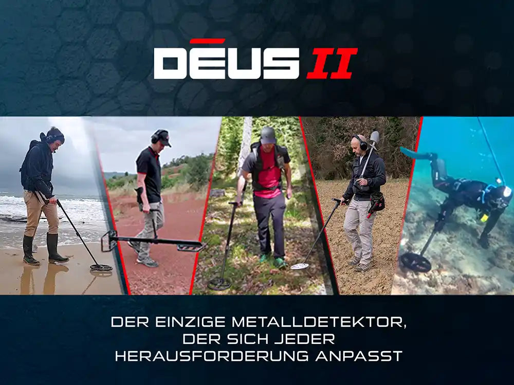 XP DEUS 2 - Ein Metalldetektor macht alles möglich! Die ultimative Vielseitigkeit des DEUS 2, der bis zu 20 m unter Wasser und 5 m unter der Erde sucht, sowie die große Auswahl an Zubehör, machen ihn zu einem einzigartigen Metalldetektor.