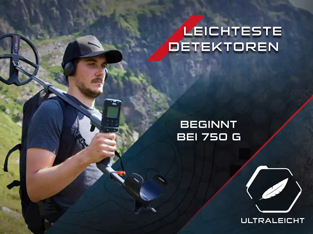Der XP DEUS 2 zählt zu den leichtesten Metalldetektoren seiner Klasse und beginnt je nach Konfiguration bereits bei ca. 750 Gramm. Durch das S-Teleskop-Gestänge und die komplett kabellose Bauweise ist er besonders ergonomisch, ideal für lange Suchsessions ohne Ermüdung. Perfekt für alle, die maximale Performance bei minimalem Gewicht suchen.